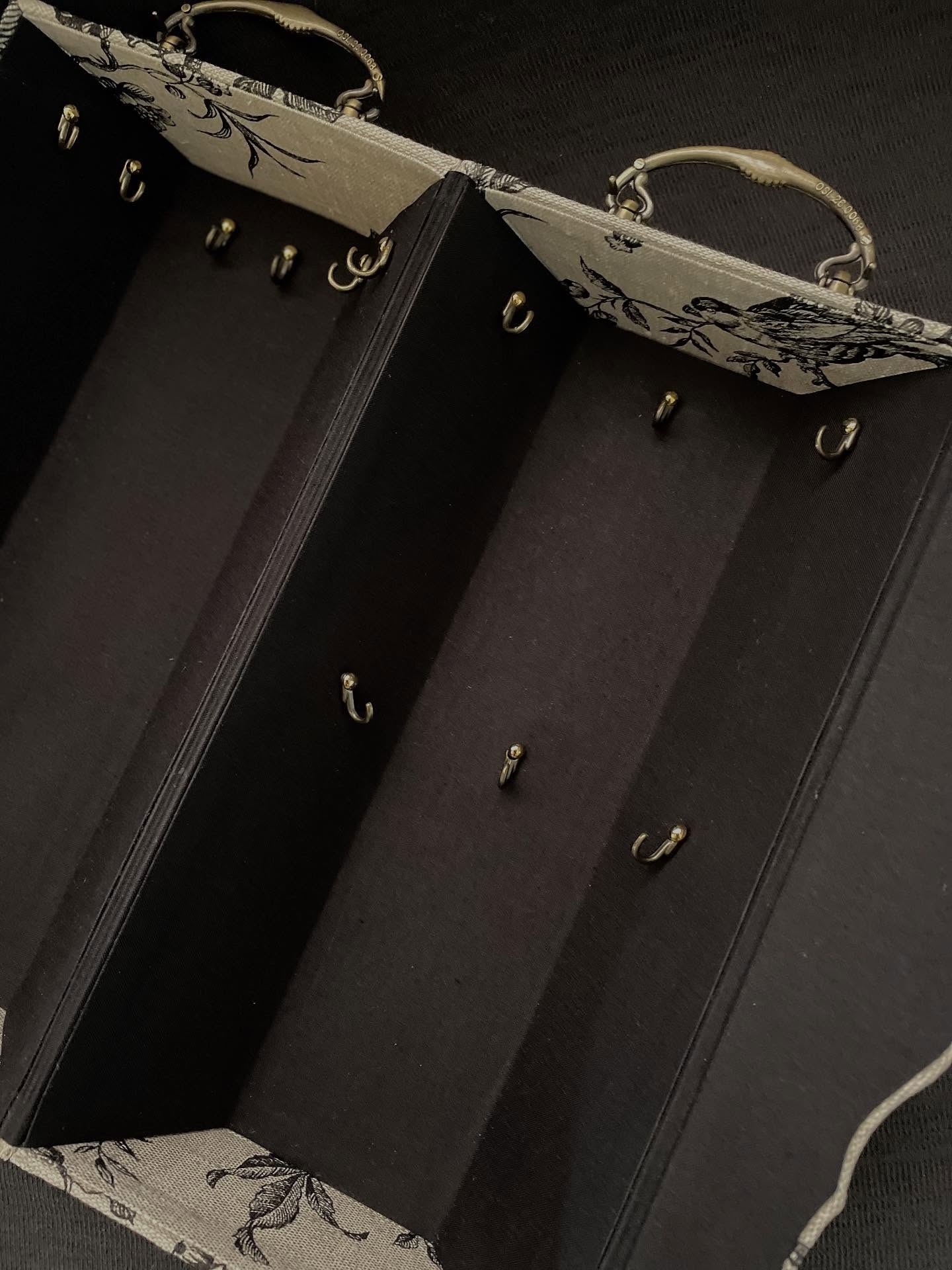 Versatile Interior: Fitted with convenient hooks to hang necklaces and bracelets, plus ample space for rings, earrings, and brooches.