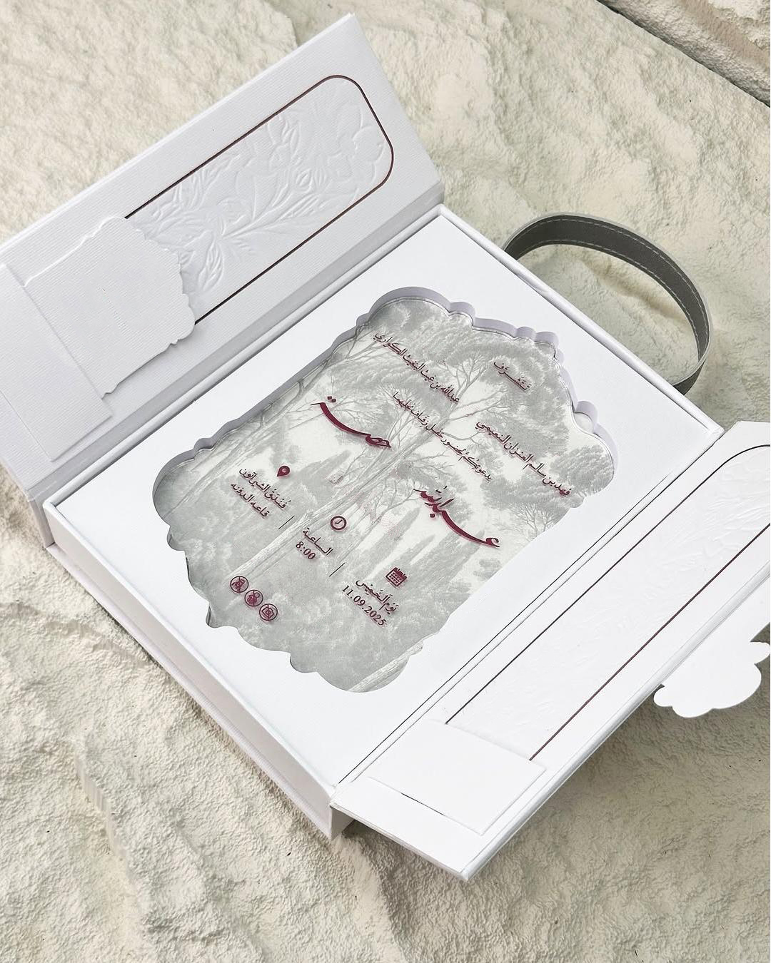 This high-end custom wedding invitation box is made of thickened art cardstock with a finely textured surface. The pink series features a layered design of semi-transparent white paper, while the forest series boasts a perforated windowpane design. The box's opening and closing mechanism is ingenious, offering either a double-door or a handle-style box, complete with a textured leather carrying strap. Opening it is like unveiling the prelude to a wedding ceremony, with details that convey a sincere invitation to your guests.