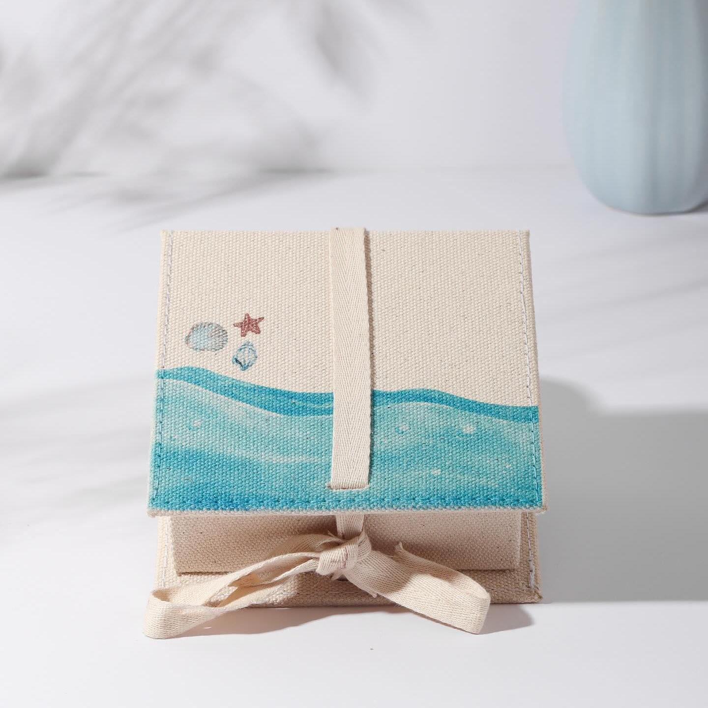 This fabric storage box features a fresh and elegant design, featuring vibrant floral or ocean motifs. The matching strap secures the lid, preventing items from slipping out and adding a touch of sophistication. It's perfect for carrying and storing small items like nail polish, lipstick, perfume, and spice bottles. It's the perfect gift for beauty enthusiasts and those seeking a refined lifestyle.