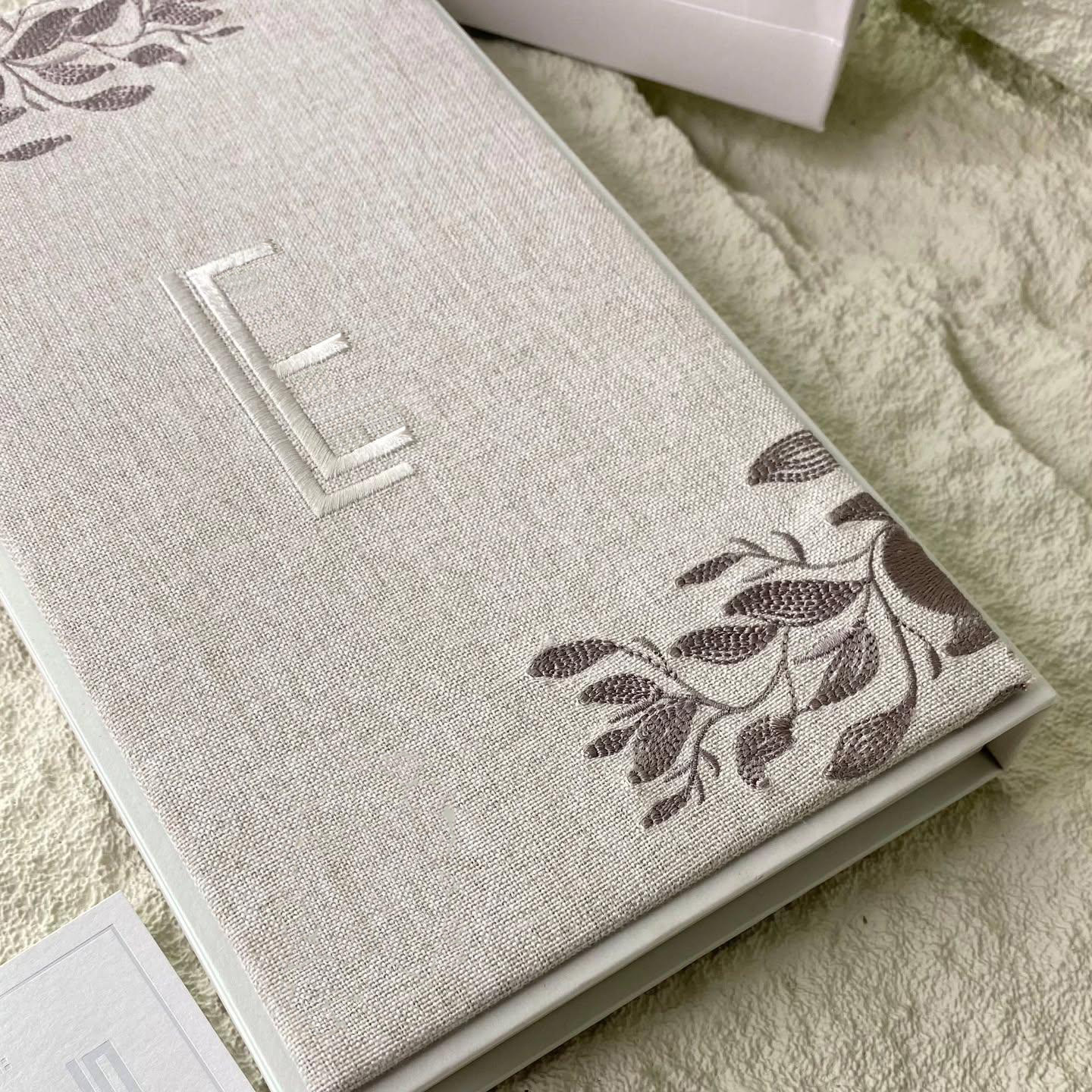 This wedding invitation box features linen-wrapped paper packaging and an exquisitely embroidered pattern with vibrant and elegant floral elements. Open the box to reveal your invitations. Whether used to store wedding invitations or to store wedding memorabilia, its high-quality and elegant design will create a striking addition to your wedding, creating unforgettable memories for both the couple and their guests.