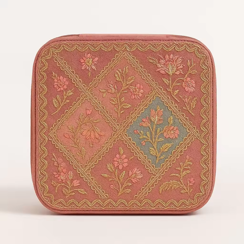 This is a treasure chest for your treasures that you will love to keep. Dimensions and other information Color description: Cream, Pink, Silver Composition: Cotton, Lining: Polyester Satin
