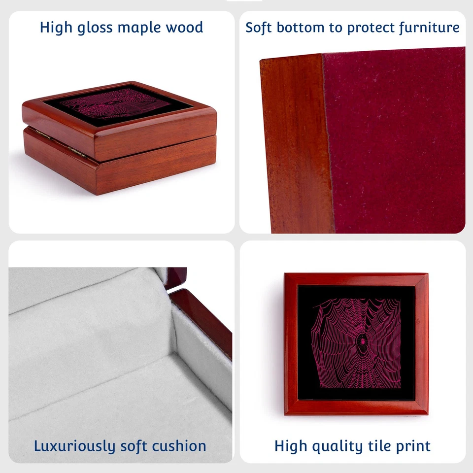 Crafted from rich, natural wood, this exquisite jewelry box combines artistry with eerie charm. The delicate cobweb embroidery, intricately stitched onto the lid, evokes the mystical allure of Halloween, blending Gothic elegance with timeless craftsmanship.