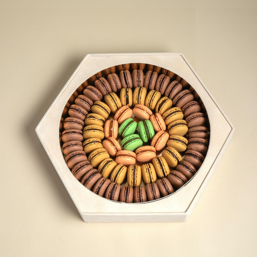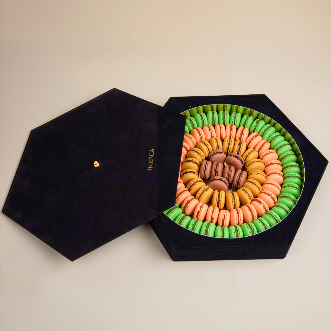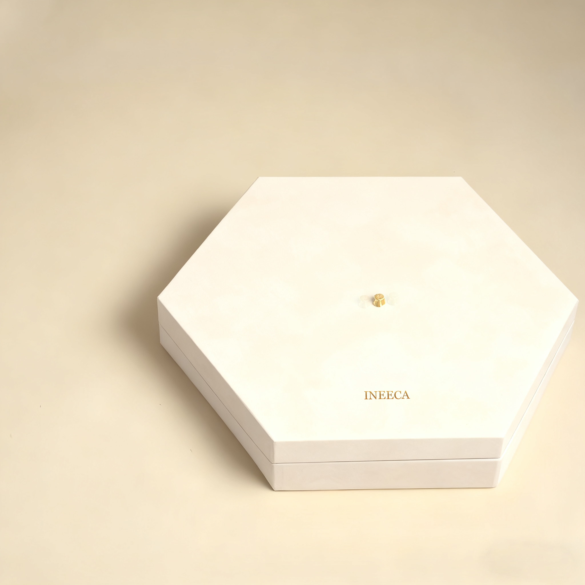 Our exquisite hexagonal lid gift box perfectly blends elegant design with practicality. Designed for high-end gifts, this box is ideal for displaying a selection of macarons, chocolates, handmade candies, delicate desserts, or luxury sweets.