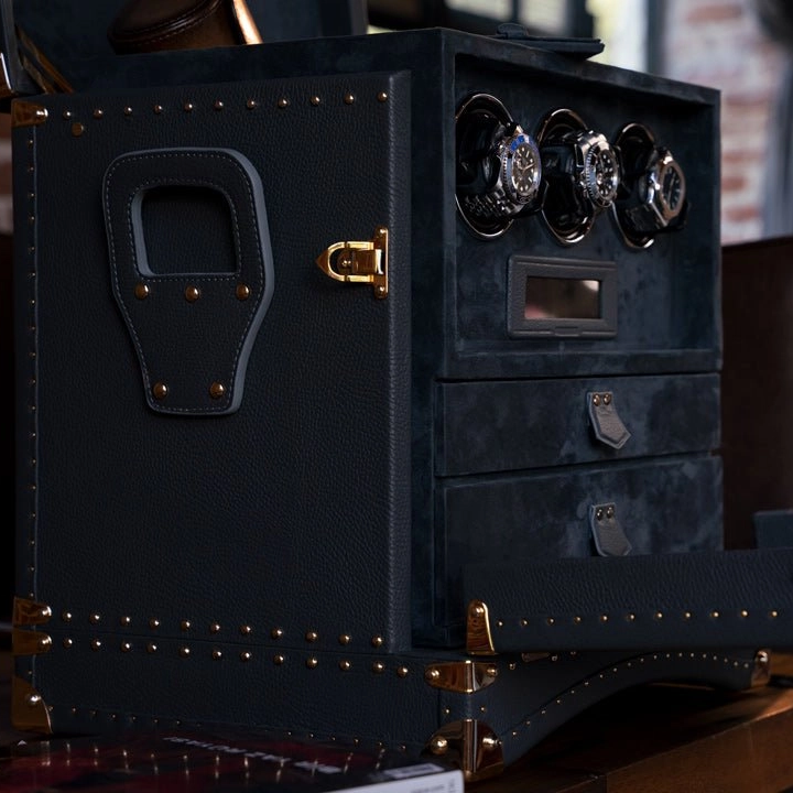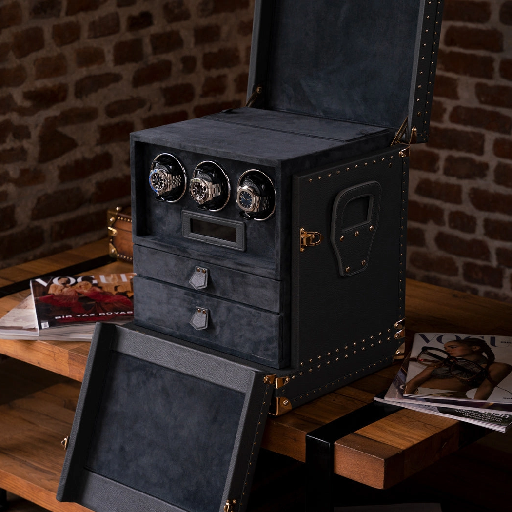 These eye-catching trunks, which are rare examples of their kind, contain many sections that offer stylish and useful solutions. A gigantic organizer adorned with exquisite detail throughout.