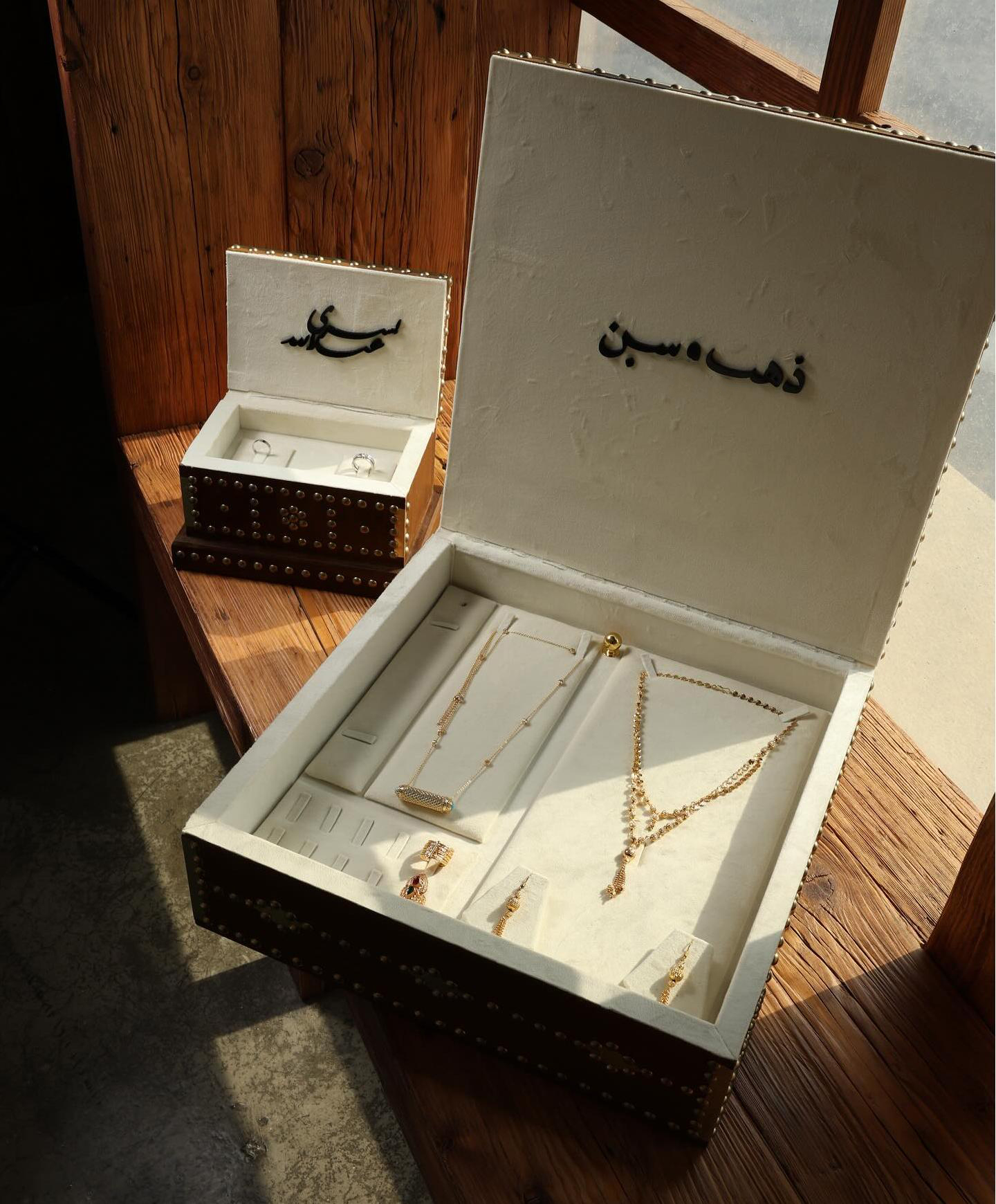Metal Rivets Wooden Jewelry Packaging Set Box