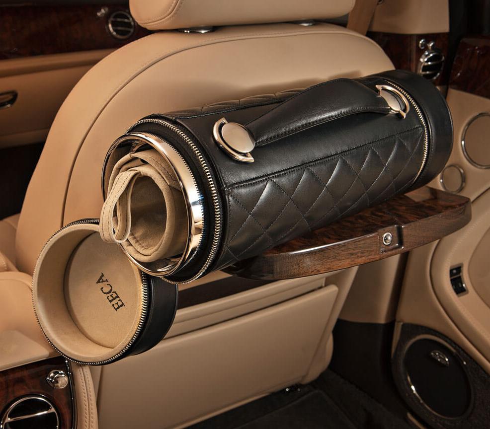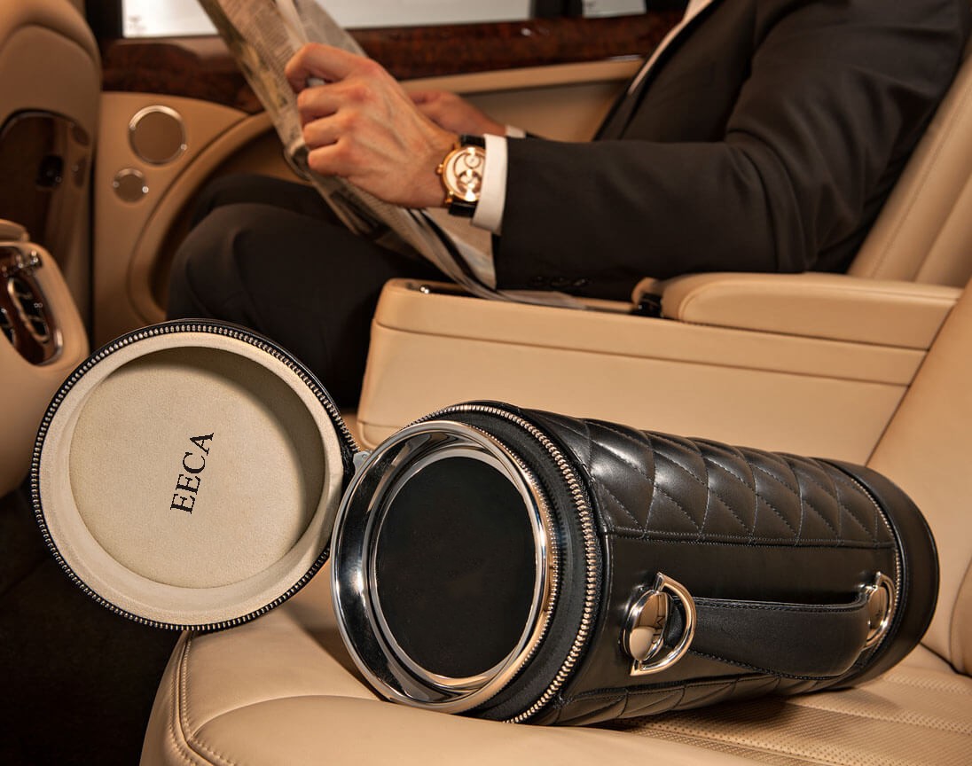 This high-end watch storage bag is crafted from premium leather, available in a variety of styles, including black crocodile and burgundy diamond patterns, for a refined and sophisticated look. The cylindrical shape features a quilted interior with watch storage, accommodating up to six watches, providing secure and professional storage, effectively protecting them from bumps and wear. The included shoulder strap allows for easy carrying, making this bag a perfect choice for both business trips and everyday use, showcasing both luxury and practicality.