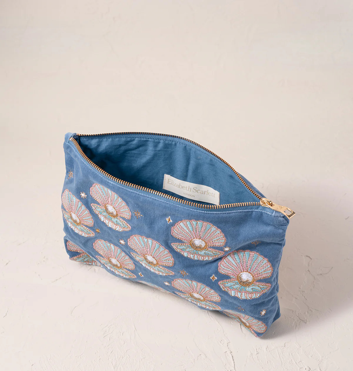Gold zipper across the top for easy access
