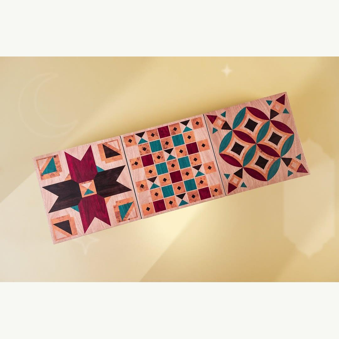 This high-end solid wood pastry gift box features a crafted wooden body. The lid's decorative surface utilizes screen printing and wood veneer inlay techniques to create three-dimensional floral textures, vintage Islamic geometric patterns, and a colorful woodwork effect, showcasing the exquisite craftsmanship of each detail. The multi-compartment design securely stores handmade chocolates, flavorful dates, and specialty desserts, effectively preventing damage from collisions. The lid is equipped with metal hinges for smooth opening and closing, while gold hardware adds a touch of luxury. The symmetrical design of geometric and floral patterns is rich in cultural heritage, making it suitable for Ramadan celebrations, business gifts, and high-end souvenirs, conveying an elegant and distinguished sentiment.